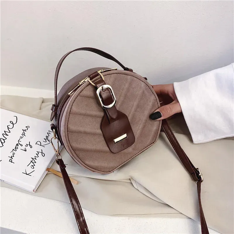 Women Vintage Round Shape Single Strap PU Crossbody Bag