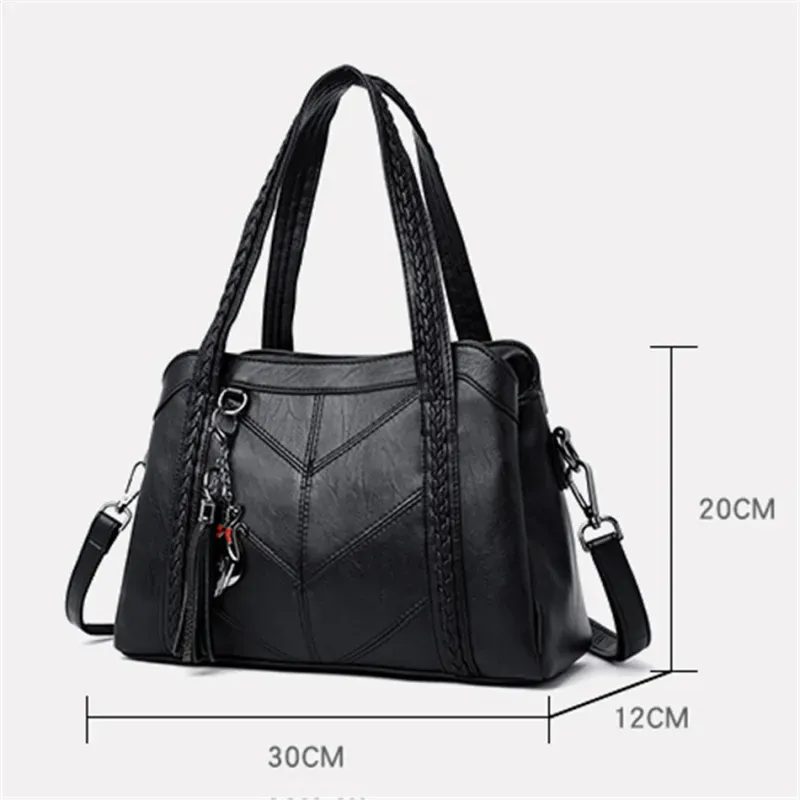 Women Vintage Tassel Pendant Solid Color Large Capacity PU Handle Bag
