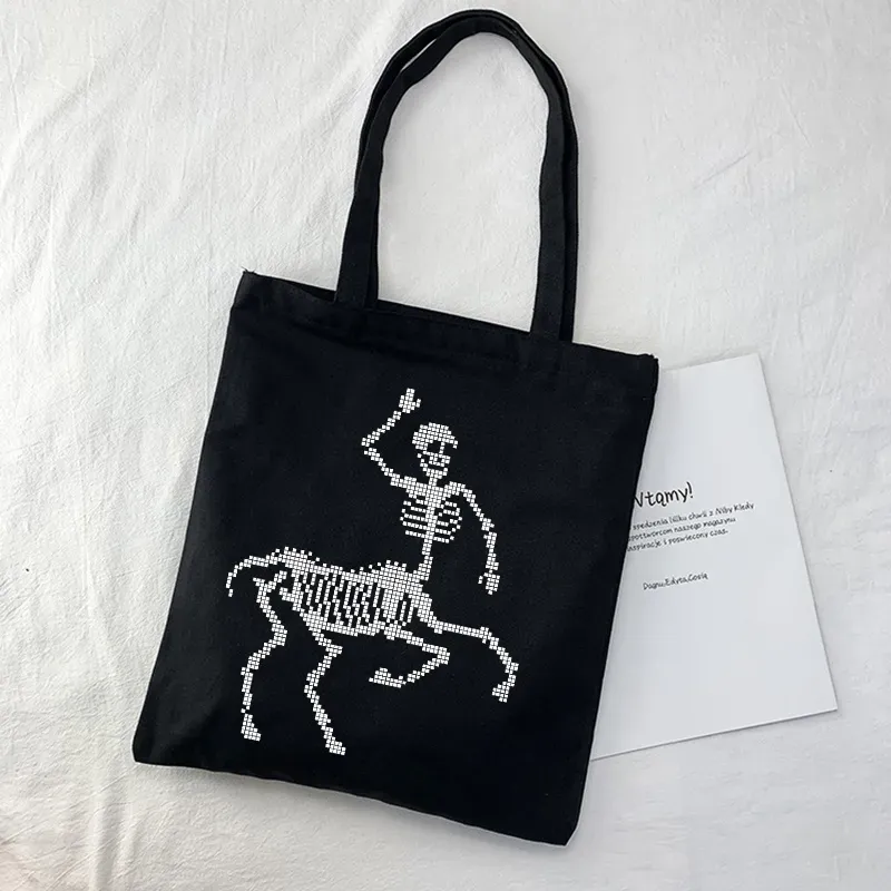 Women Casual Basic Skull Pattern Large Capacity Canvas Tote Bag