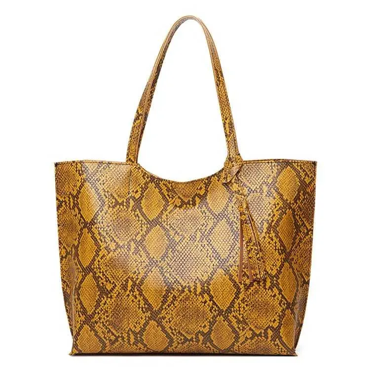 Women Fashion Snakeskin Print Large Capacity Tassel Tote Shoulder Bag