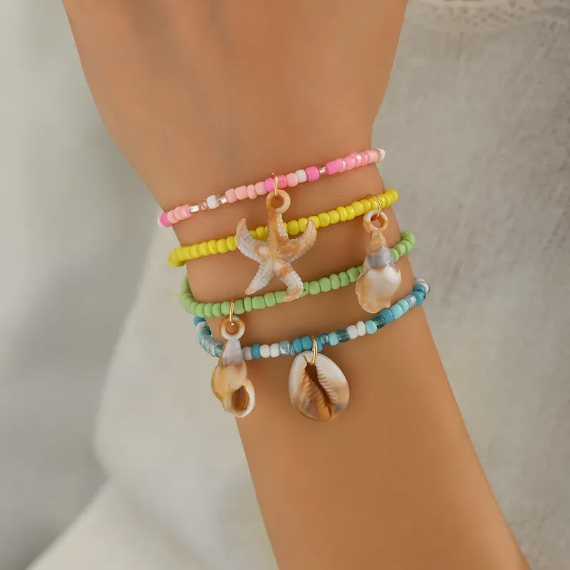 Wholesale Multicolor Bohemian Mi Zhu Starfish Shell Sea Bracelet 4 Piece Set