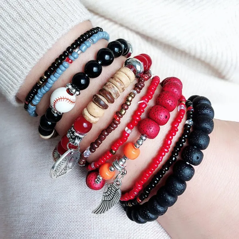 Wholesale Women Fashion Retro Boho Multi-Layer Rice Beads Bracelet