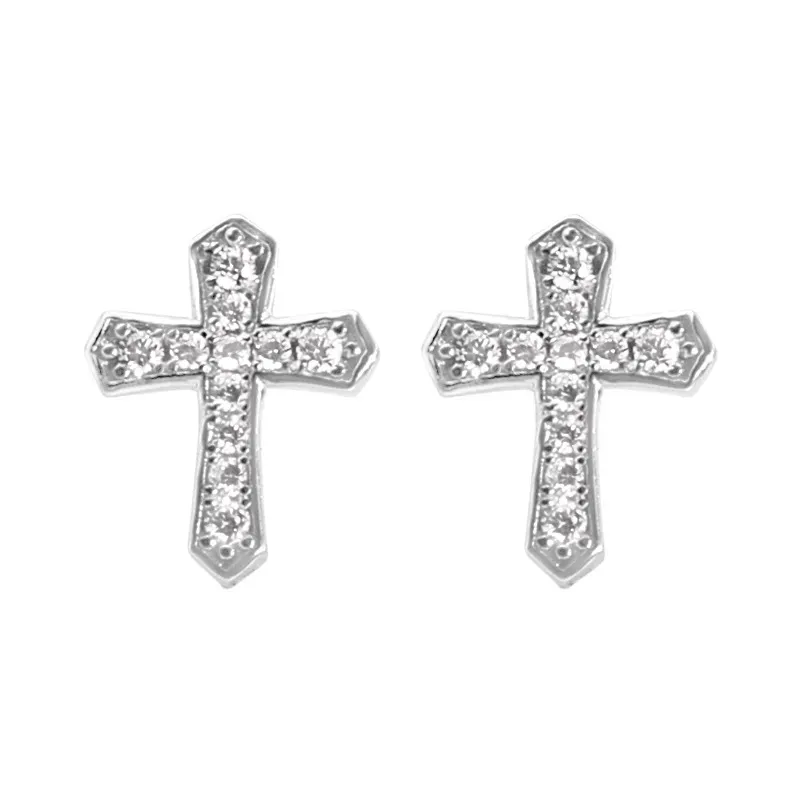 Wholesale Men Fashion Micro-Inlaid Zircon Cross Earrings Cross Jewelry