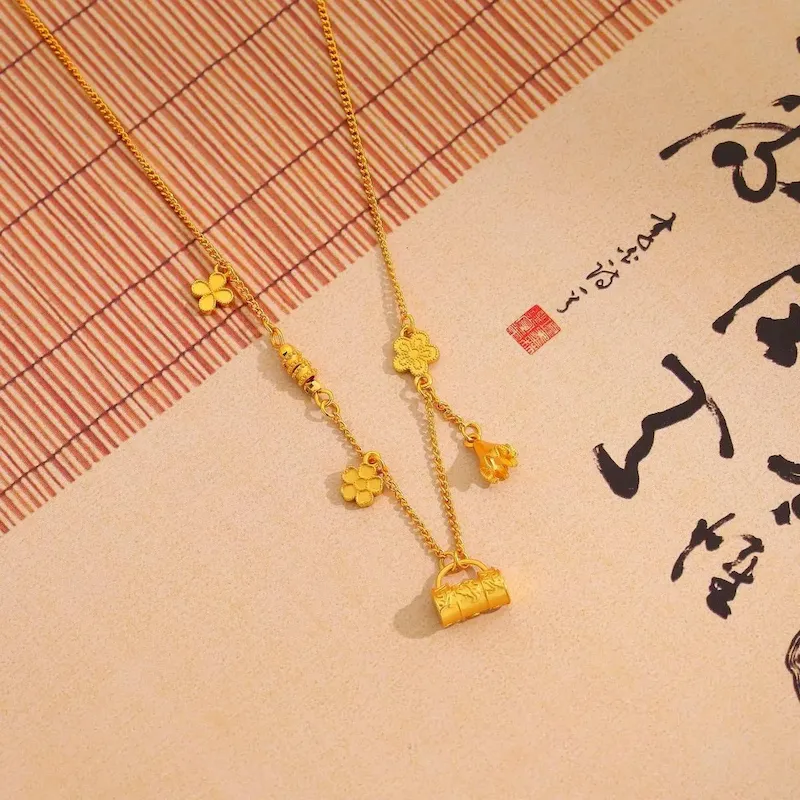 Wholesale Women Fashion Elegant Flower Lock Bag Necklace