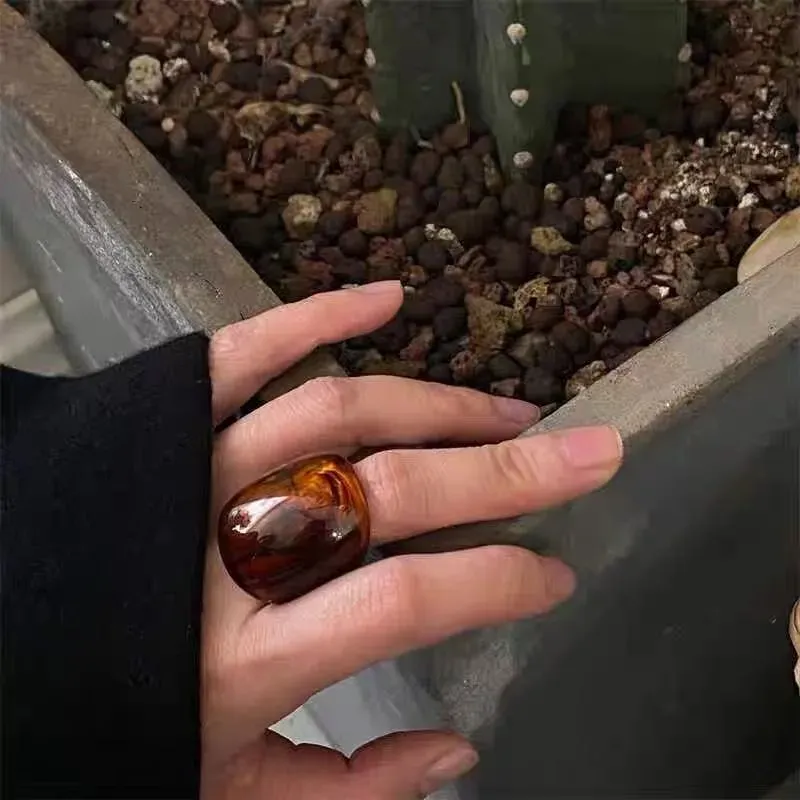 Wholesale Women Fashion Retro Amber Geometric Acrylic Resin Ring