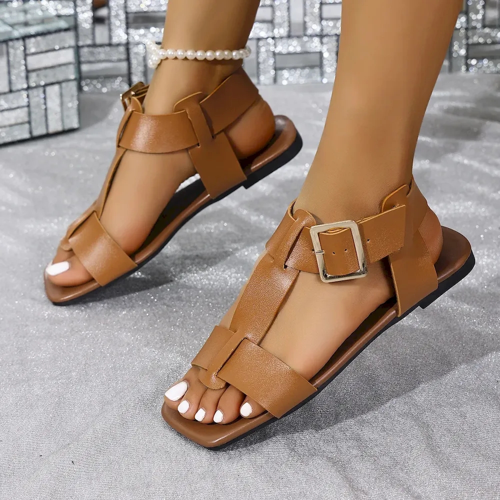 Plus Size Women’S Fashionable Flat Square Toe Sandals