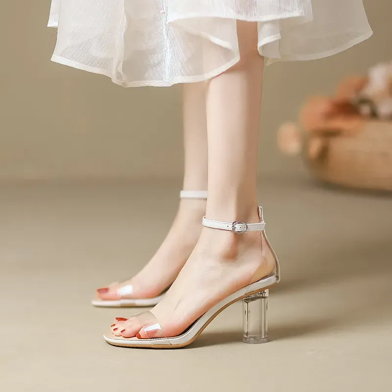 Summer Women Fashion Transparent Buckled Chunky Heel Sandals