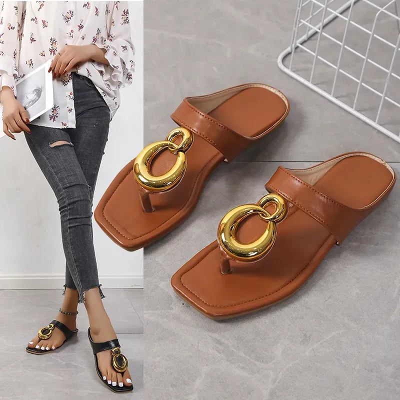 Women Casual Plus Size Metal Square Toe Flat Slippers