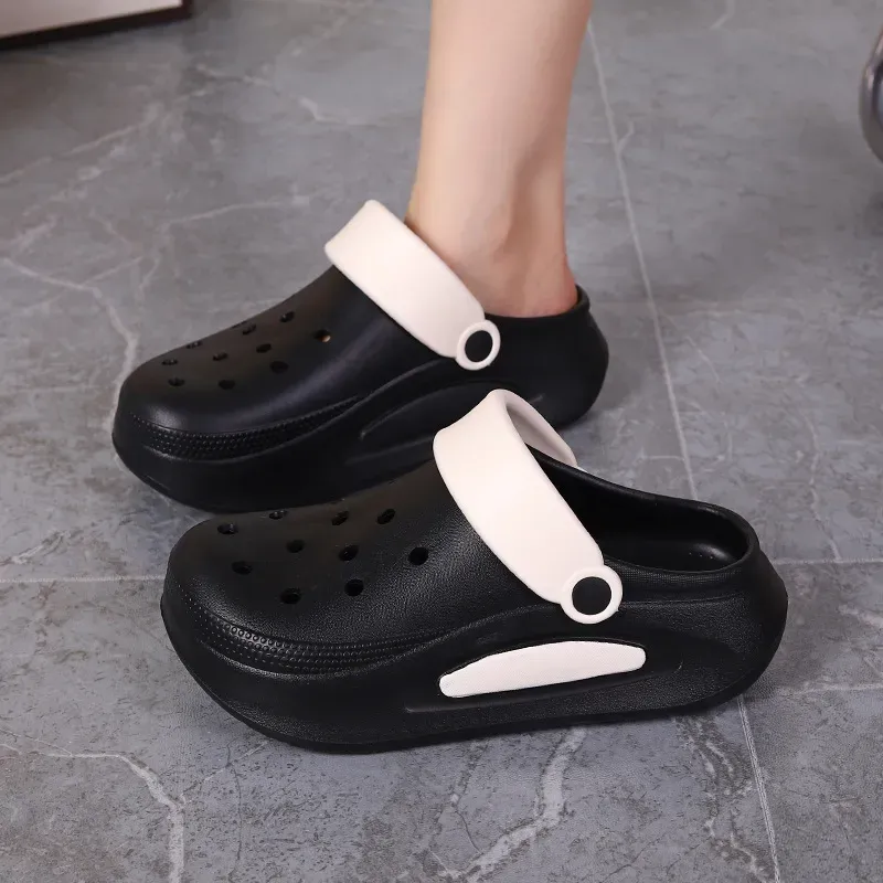 Women Fashion Casual Contrast Color Thick-Soled Non-Slip Hole Shoes Slippers