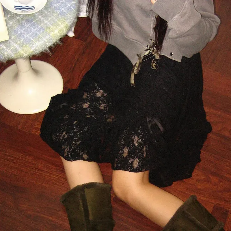 Summer Women Fashion Palace Style Lace Ruffled Skirt