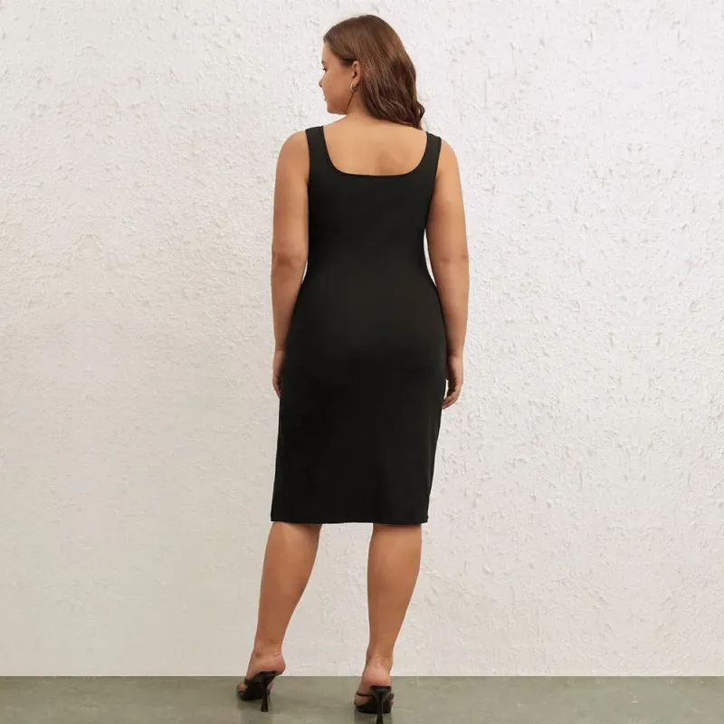 Women Plus Size Basic Solid Color Side-Slit Tank Dress