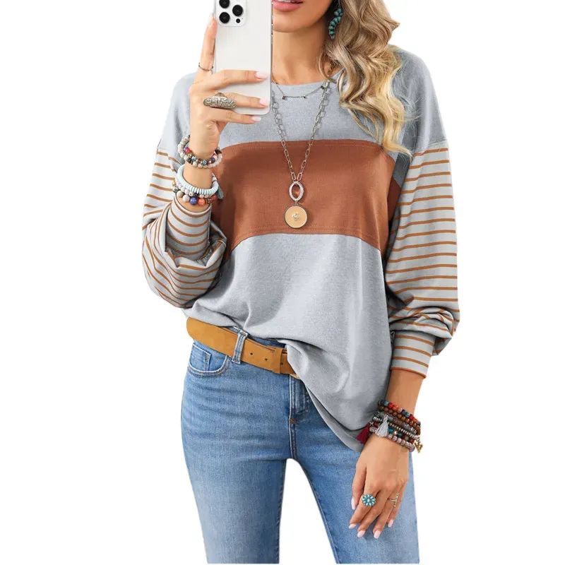 Women Casual Stripe Crewneck Long Sleeve Sweatshirt