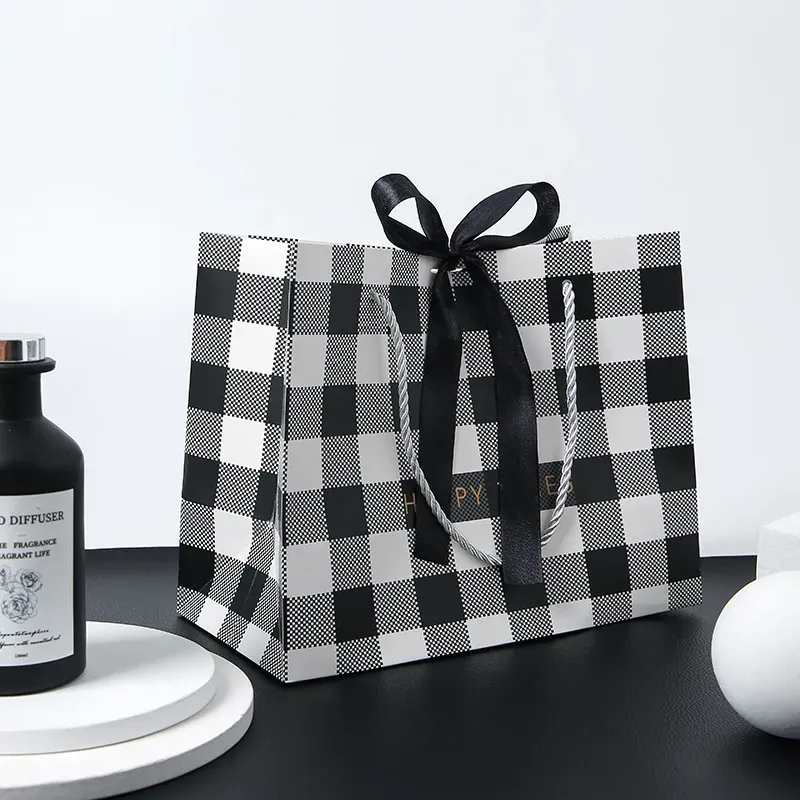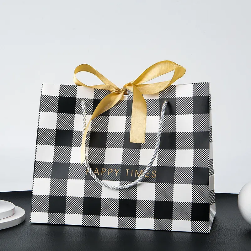 | Color | Black White Check With Gold Ribbon, Black And White Check With Black Ribbon |