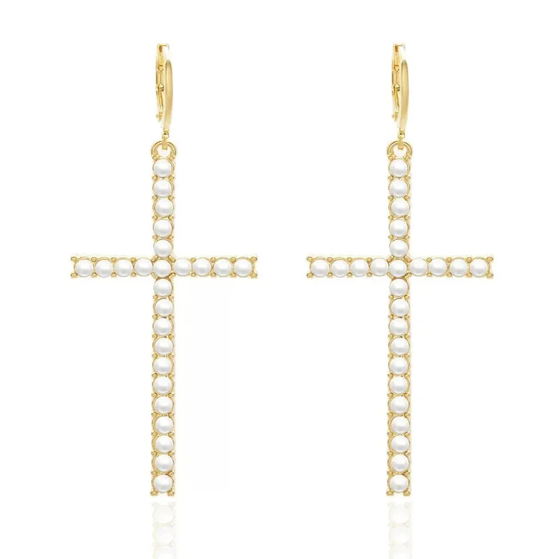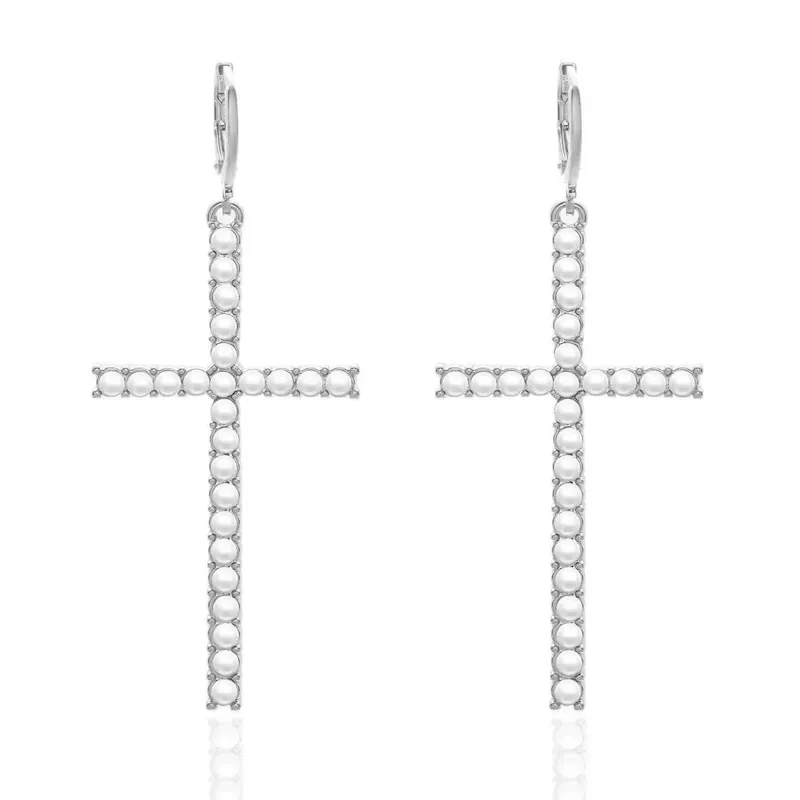 | Color | Gold Pearl Big Cross Earrings, Gold Rhinestone Large Cross Earrings, Silver Pearl Big Cross Earrings, Silver Rhinestone Large Cross Earrings |